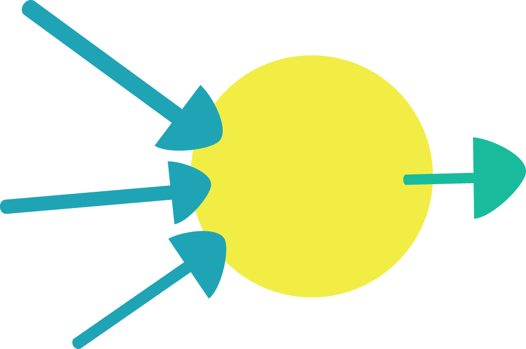 Once you have calculated the weighted values of all the inputs, you can add these together. This number is very important. If this number is less than our assigned 'threshold value', then it will be a negative outcome. If this number is equal to, or greater than our threshold value, it will be a positve outcome. Pretty simple right?