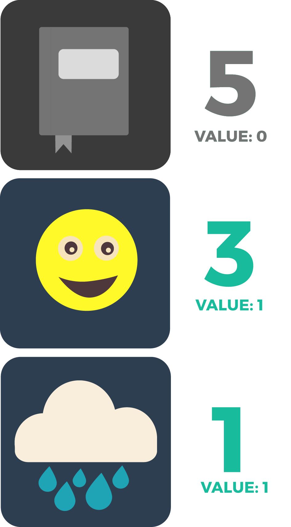 The math behind our perceptron is very simple. Like you can see in the Deep Dive lesson, the first step is figuring out whether the inputs are a '0' or a '1'. Once we have these numbers, we multiply them by the input weights. So for example, if you had an input with value '1' that had a value of '4', you would multiply 1 by 4, to find it's weighted value.